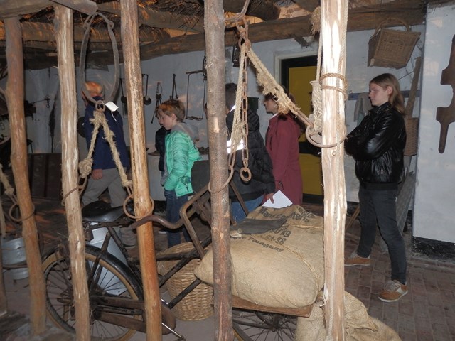 De les in/rond het museum duurt anderhalf uur en bestaat uit een circuit van 5 activiteiten: spelletjes van vroeger, dorsen, wannen en malen van het graan, zanden, klompendans, tekening maken in een spiegelkast.
