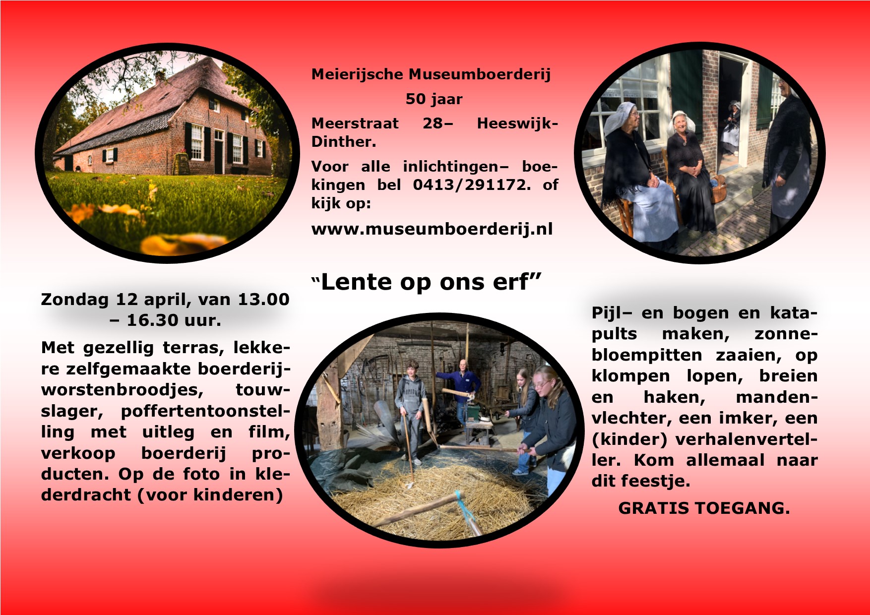 Dit jaar (2026) bestaat het museum 50 jaar! In 1976 besloot een groep enthousiaste vrijwilligers uit onze dorpen een museum op te richten met als thema: "Het boerenleven in onze streek (De Meierij) tussen 1880 en 1930". Met als naam: De Meierijsche Museumboerderij ging men fanatiek aan de...
